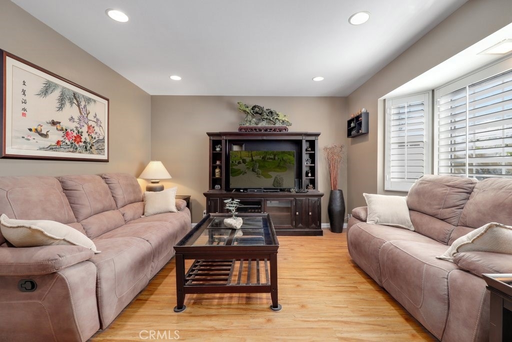 This “Move in Ready” Condo is located in the Beautiful “Erna Del Place” community in La Habra. Walking in to the Town home from your own covered carport makes, this unit feel very private. When you enter the home, you are welcomed with beautiful wood flooring in Living Room & Stairs. The living space is very light and cheerful due to a large plate glass, shuttered window and recessed lighting. You than enter into the dining area, which is open to a good-sized kitchen with more, recessed lighting that also offers a sizable Laundry room. The dining area has a generous sliding glass door that bolsters even more light and goes out to a beautiful patio, equipped with terra Cotta tiles. There is a good-sized powder room downstairs for guest. Upstairs you find 2 very spacious Bedrooms and a Bath. There are new Windows throughout home. The unit comes with a 1 car garage, covered carport and ample guest parking. The community has only 19 units that are nicely nestled in a hidden space for added privacy. Community is quiet and well kept.