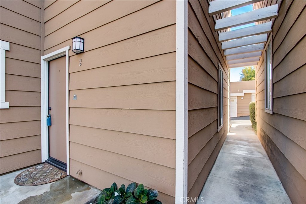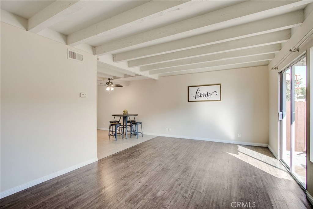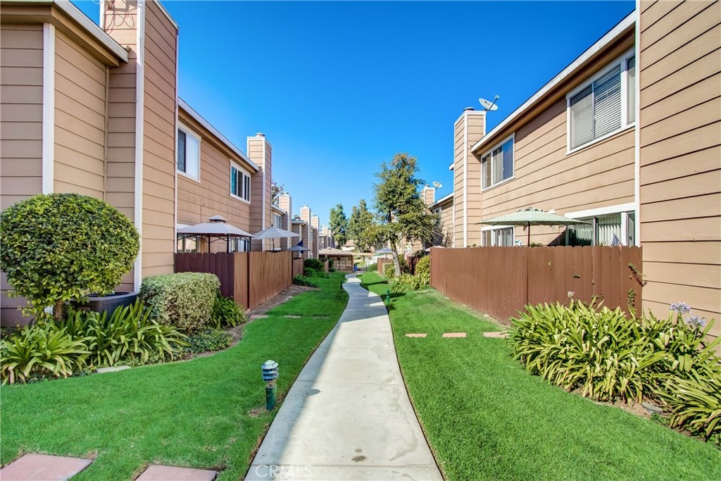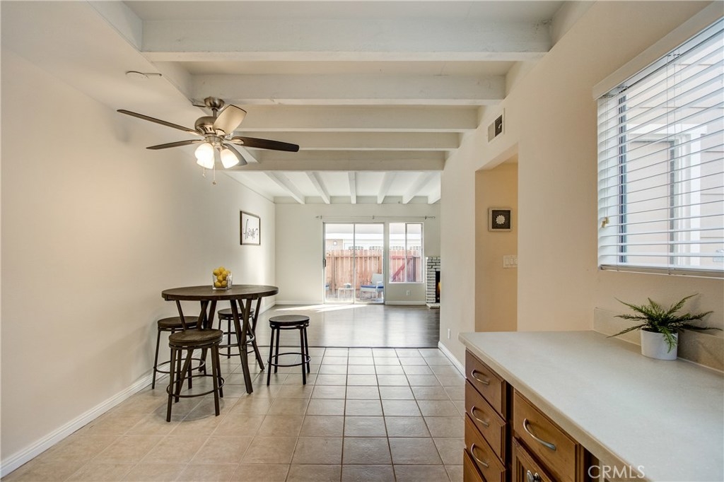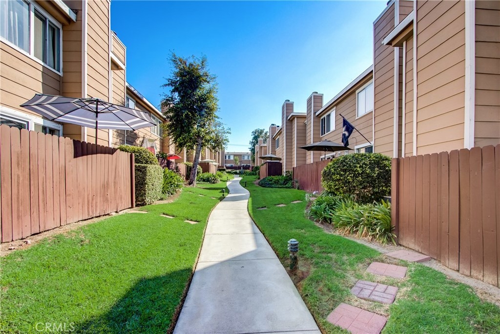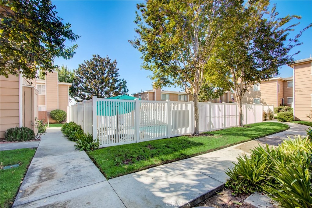 This beautiful North Orange County home features a spacious floorplan, new interior paint with calming earth tones, and wood-like laminate plank flooring throughout! The kitchen offers wooden cabinetry with lots of storage space, newer stainless steel appliances which include a stove, microwave and dishwasher, in-unit stacked washer and dryer laundry area, and opens to the dining room. The large living room offers an abundance of natural light, gorgeous beamed ceilings, a whitewash brick fireplace, and a half-bathroom complete the downstairs. Both of the bedrooms are generously sized, offer lots of natural light and share a full-size bathroom with a granite countertop. This home offers a two-car garage, central A/C, and private back patio. Entertain guests out by the sparkling community swimming pool, and enjoy the well-manicured landscaping that this complex has to offer! This home is conveniently located near schools, shopping, restaurants, and more! Don't wait!