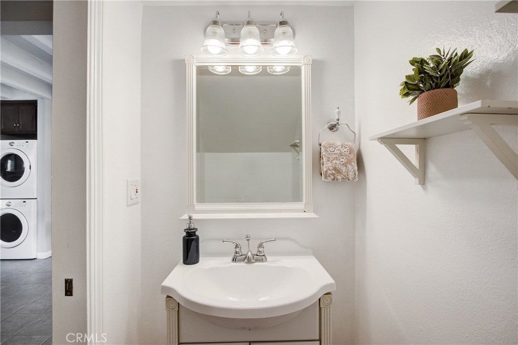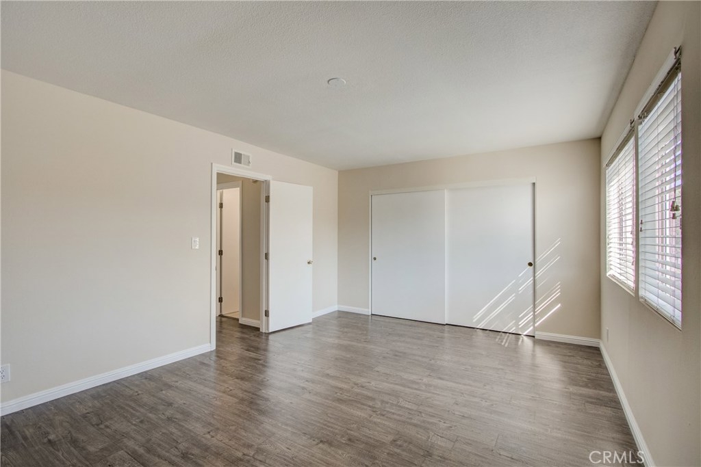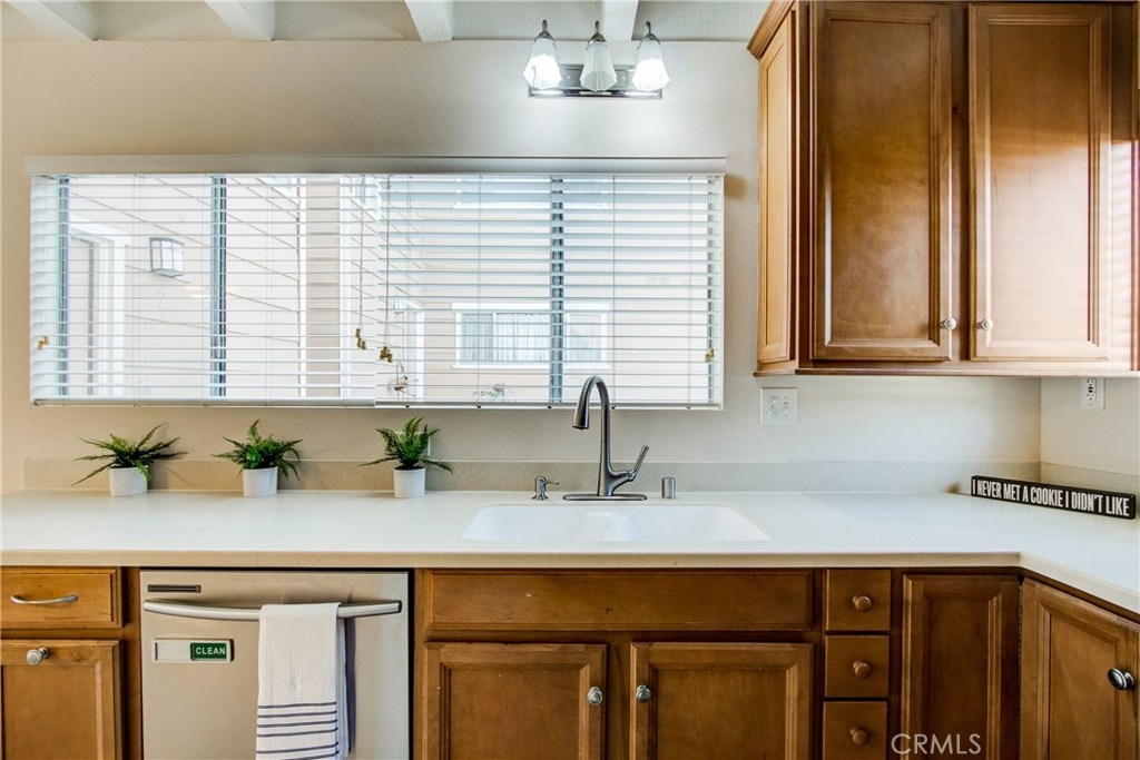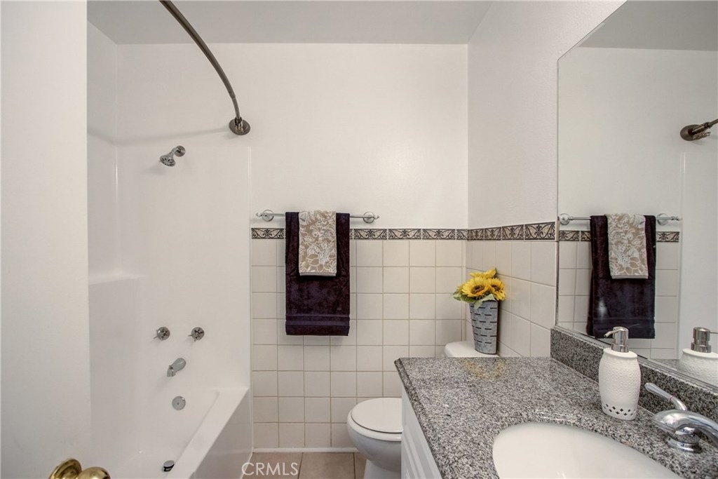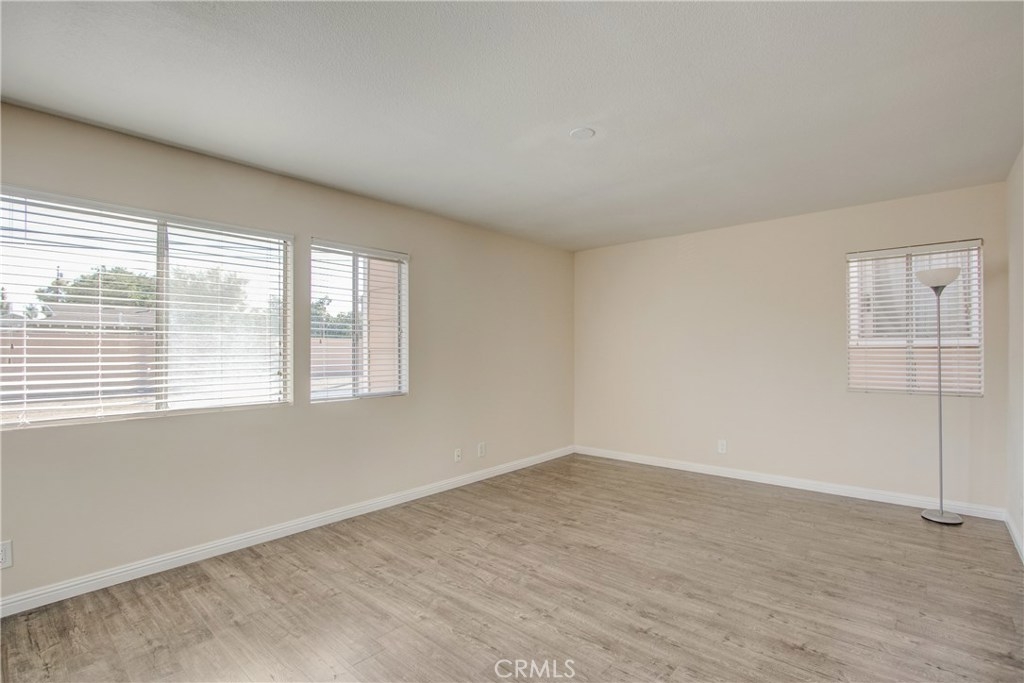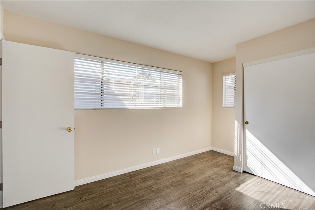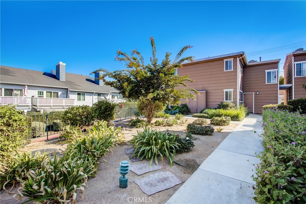 This beautiful North Orange County home features a spacious floorplan, new interior paint with calming earth tones, and wood-like laminate plank flooring throughout! The kitchen offers wooden cabinetry with lots of storage space, newer stainless steel appliances which include a stove, microwave and dishwasher, in-unit stacked washer and dryer laundry area, and opens to the dining room. The large living room offers an abundance of natural light, gorgeous beamed ceilings, a whitewash brick fireplace, and a half-bathroom complete the downstairs. Both of the bedrooms are generously sized, offer lots of natural light and share a full-size bathroom with a granite countertop. This home offers a two-car garage, central A/C, and private back patio. Entertain guests out by the sparkling community swimming pool, and enjoy the well-manicured landscaping that this complex has to offer! This home is conveniently located near schools, shopping, restaurants, and more! Don't wait!