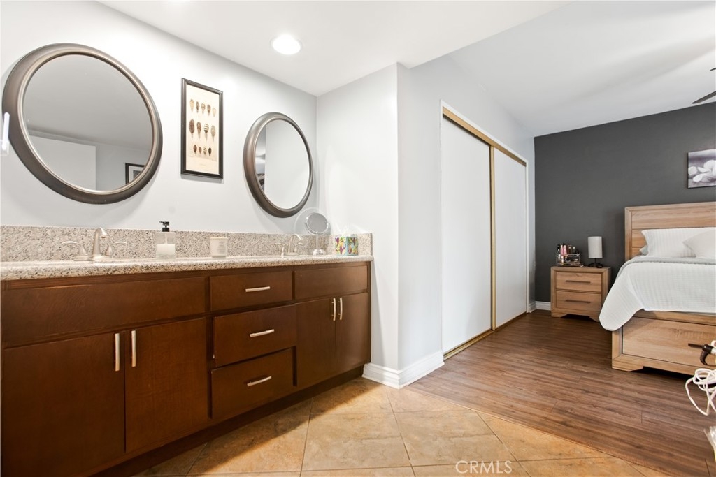 This elegant downstairs home offers 2 bedrooms and 2 bathrooms with a warm, welcoming feel in Woodlake Villas. The spacious living room features wood flooring, recessed lighting, and a natural flow into the dining area and kitchen making it easy to relax or entertain. The primary suite is generous in size with a large closet that offers plenty of storage. The ensuite bathroom includes dual sinks and a separate shower area for a touch of privacy and comfort. The central AC and heating keeps the home at the perfect temperature year round. Step outside to a private backyard that’s perfect for casual dinners, weekend BBQs, or just unwinding at the end of the day. The community is surrounded by trees, peaceful walking paths, and the community offers resort style amenities like a pool, BBQ areas, and a dog park. Shops and restaurants are just minutes away, so everything you need is close by. Come see this home today as it will not last!