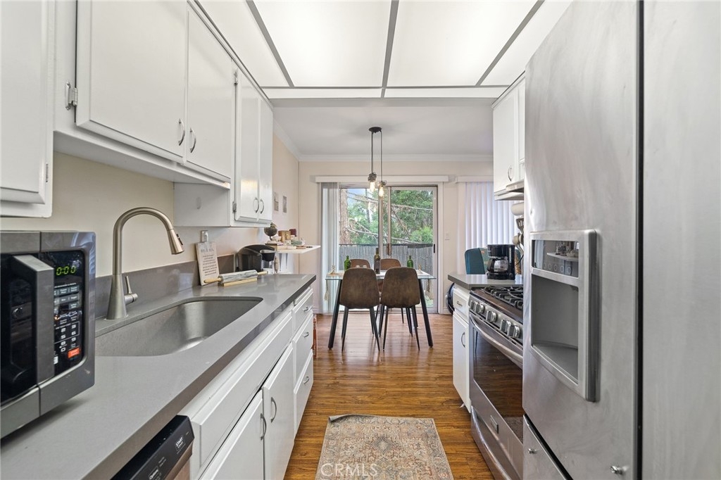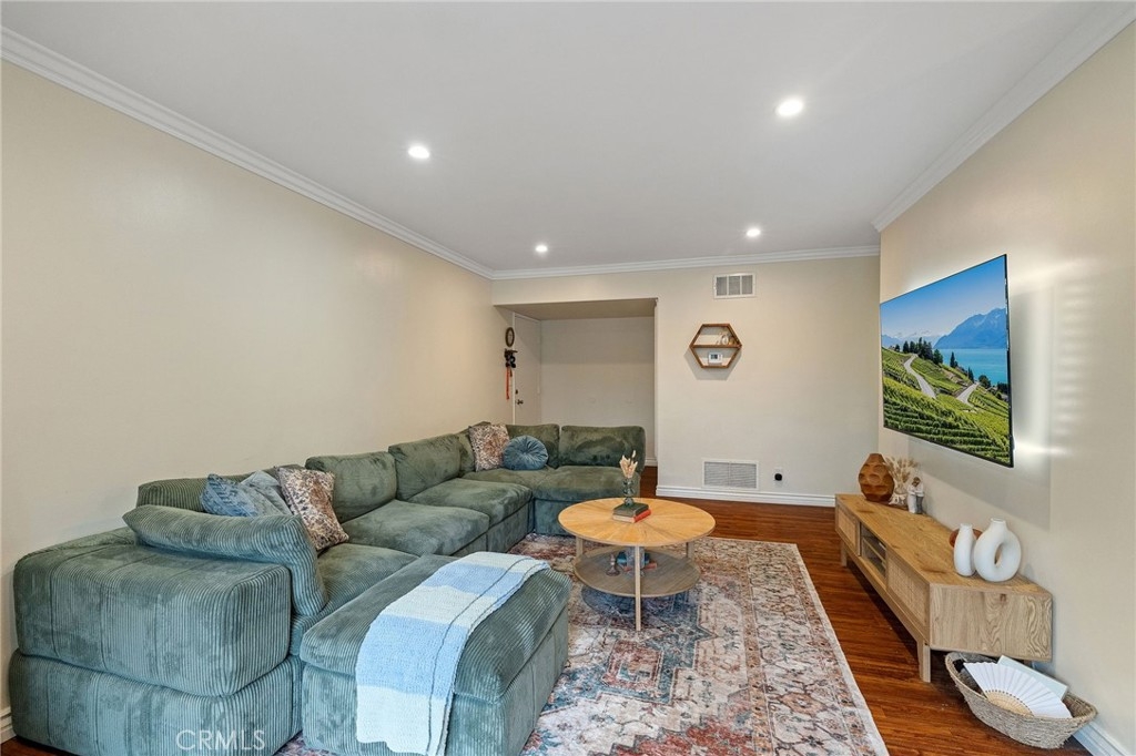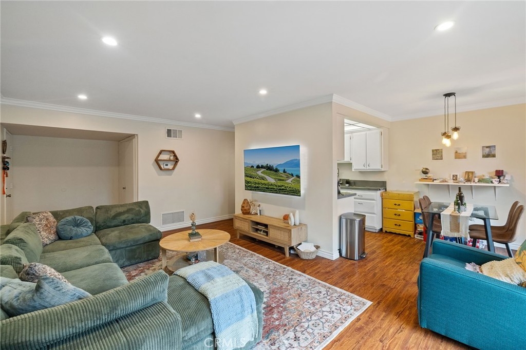 LOWER LIST PRICE THIS WEEK ONLY!! This community has it all! Woodlake Villas is surrounded by trees birds chirping and quite walking paths. Upstairs you'll find this 2 bedroom 2 bath unit gorgeous laminate flooring throughout, large family room and dinning area. Huge primary suite with large closet. This home is bright and cozy with recessed lighting, crown molding, stainless steel appliances, and upgraded bathrooms. 2 covered carports that can be converted to garages. Outdoor patio with views of trees for your morning coffee. This community has a pool, BBQ areas and great areas to walk your pets. Location is close to everything you need for shopping, dinning and entertainment. This one won't last!