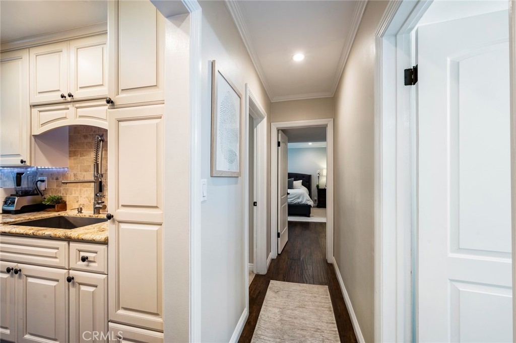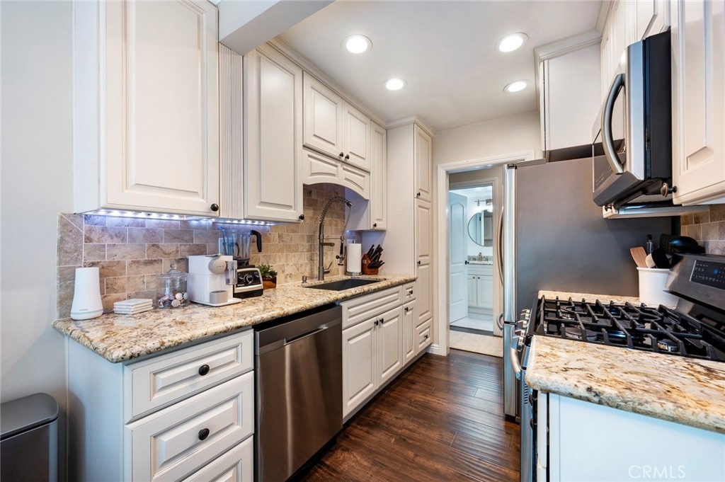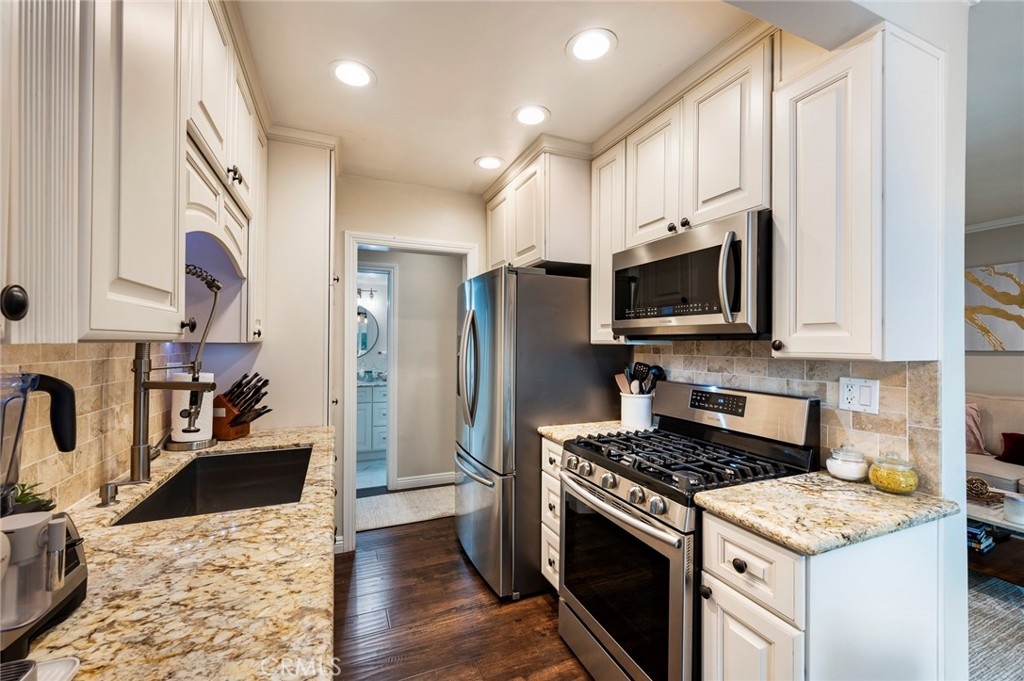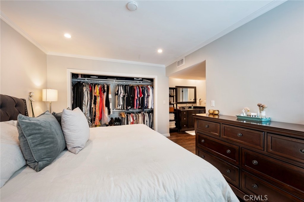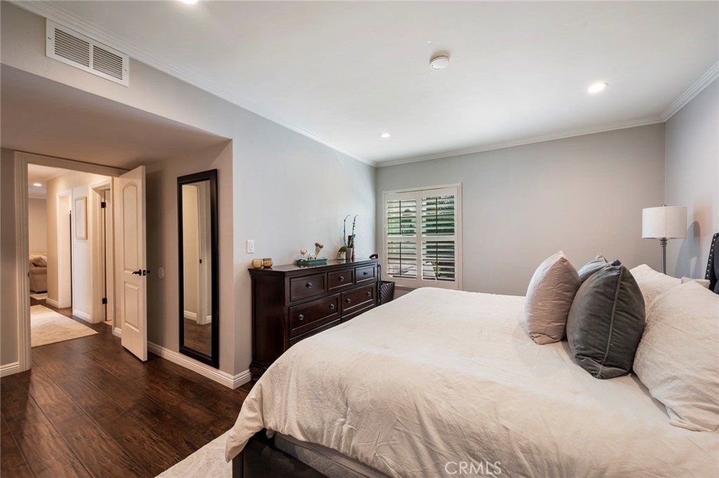 We are proud to present this beautifully remodeled condo. In the prestigious, and quiet Woodlake Village community. The owners did not spare a dime throughout living here. They have made updates as follows: New hardwood flooring, new baseboards, new crown molding, new windows, and new sliding doors. They removed the popcorn ceiling, and inserted dimmable canned lighting. All new kitchen with quality cabinets, and stainless-steel appliances. Completely remodeled bathrooms with beautiful finishes/high end shower controls. Stand up shower in the master bedroom surrounded by beautiful subway tiles and a niche for convenience and tub in the guest bathroom with a niche as well flanked by a beautiful bronze accent wall. Added washer and dryer in the unit and ran power to the garage to accommodate a powered garage door as well as a plug for an electric vehicle. Completely remodeled backyard with travertine tiles surrounded perimeter with Japanese boxwood plants and Australian beach cherry hedges. Backyard is perfect for entertaining with a lovely fountain, seating area and grill. Make this home yours before someone else does!!!