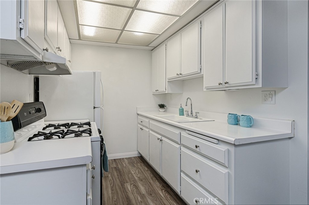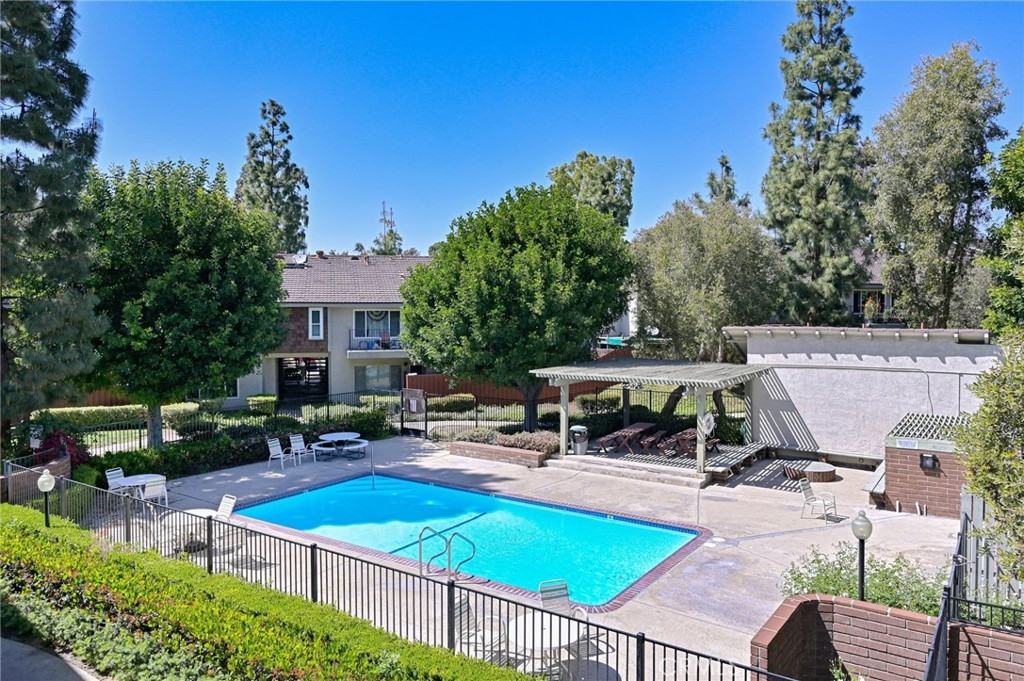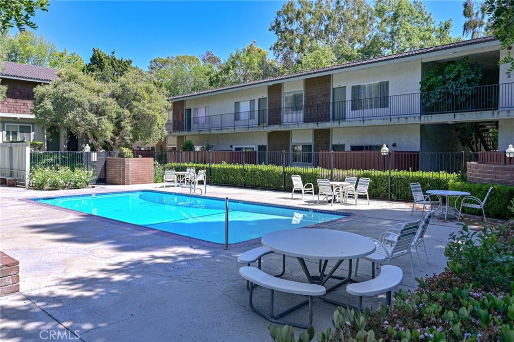 Beautiful updated Woodlake Villas condo. The upstairs condo has been remodeled with brand new vinyl flooring and fresh neutral paint. The kitchen has white cabinets, a refrigerator, and gas range. Both bathrooms have been updated with new vanities with gorgeous marble composite countertops and new faucets. There is private back balcony patio that looks out on a pretty wooded area. Parking includes a One-Car Detached Garage that sits below the unit and next to a second assigned parking stall. The condo looks over the beautiful community pool. The community also has landscaped trees, grassy area, and a dog park. The HOA includes ground maintenance, water, trash, and gas. Don't miss this opportunity for home ownership in a wonderful community! The condo is is close to great restaurants, entertainment and shopping!